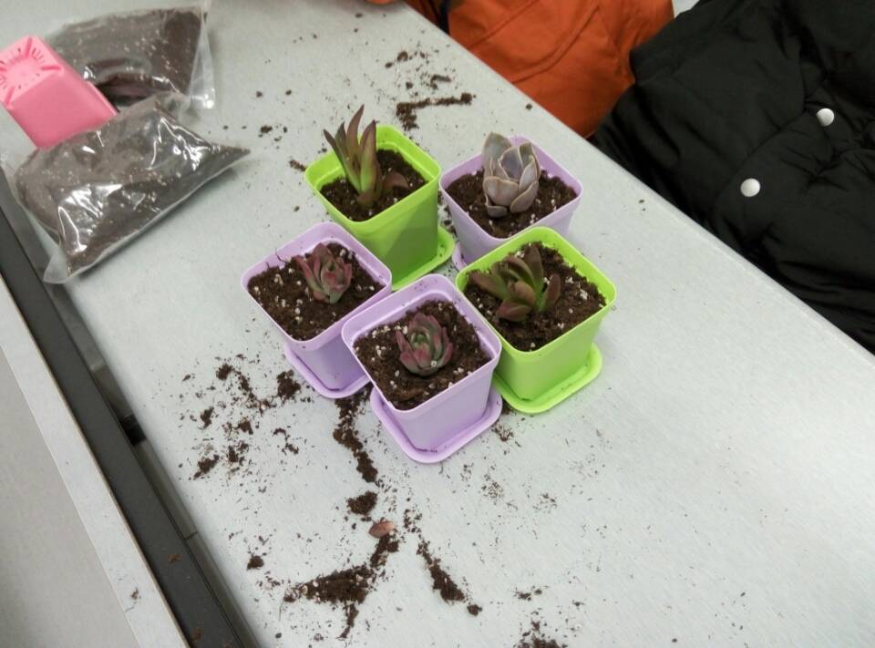 Table 1同学们开心地答题 接下来就是同学们最关心的“种花环节”,同学们选好自己喜欢的花盆,花苗后就开始地认真种起花来。 Table 2开始种花 Table 3种好的可爱的多肉植物 在一番辛劳之后,一盆盆多肉植物清新可爱的出现在我们眼前,令人爱不释手。回归环保主题,主持人继而为我们播放了《私人订制》的道歉片段。片中的雾霾,水污染,森林砍伐,煤矿挖掘的现象让在座每位同学都触目惊心。同学们借着片中引人深思的台词开始思考环保对于每个人的意义,班长带头发言说出每个同学的心声:只要我们每个人尝试去做些环保的事,这些现象就算不能根治也会变好。 随着小游戏“击鼓传花”的进行,本次团日活动渐入尾声。我们国家近几年发展迅猛,但同时环境污染问题也令人堪忧。我们不该将自己周围的环境当作一种免费的商品,任意地糟蹋而不知加以珍惜。人人为环保,才能让环保为人人。让我们捧着绿色的旗帜,健康知足地生活和学习。