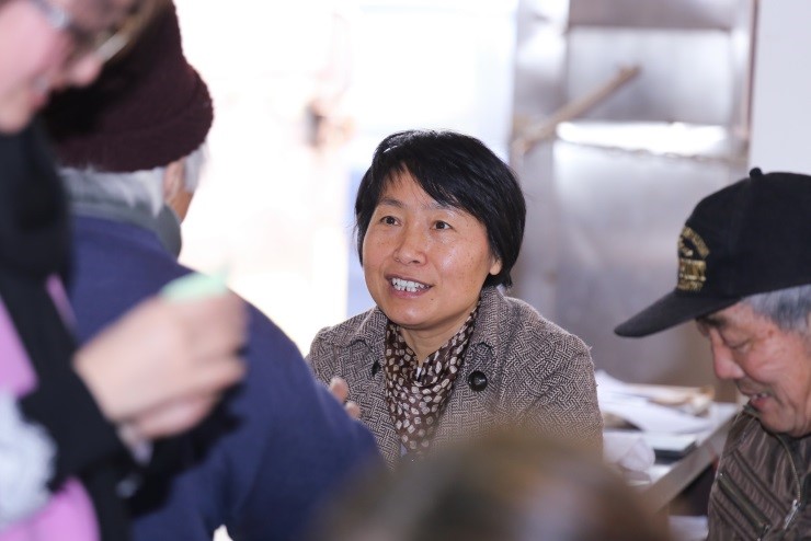 老年活动中心的负责人胡新花在活动前与老人们和同学们亲切交流