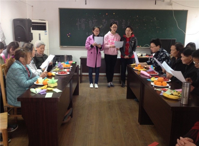 华东师范大学孟宪承书院2013级中文系2班春季团日活动——暨“情暖夕阳红”公益活动,于2015年3月22日在闵行区吴泾镇永南社区举行,活动得到了永南社区老年活动中心的大力支持。