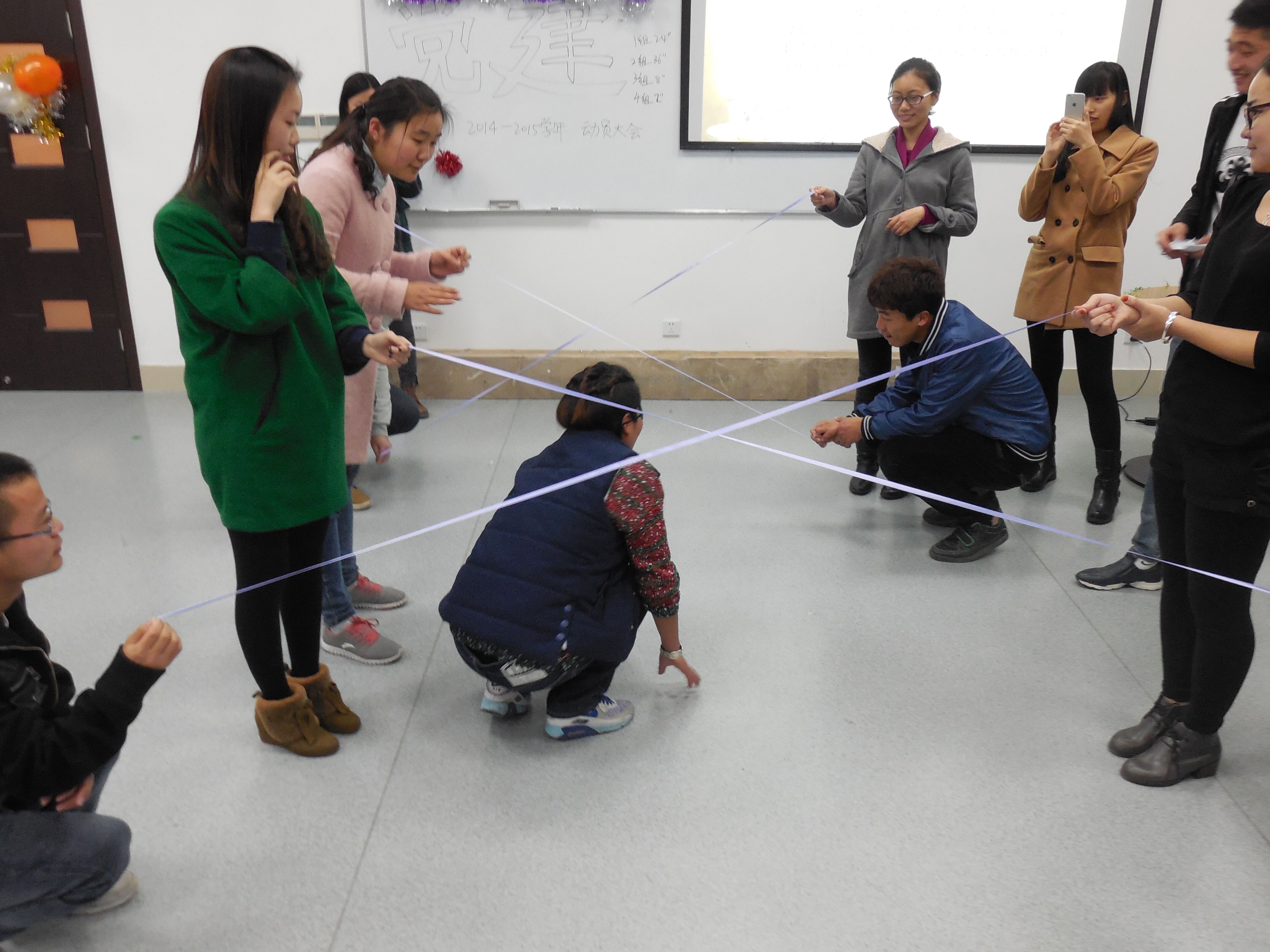 为进一步加强中心部员的团结协作精神和使命必达的责任感,动员大会安排了团体互动环节。“心有千千结”环节,参与的部员以部门为单位,随意走散打乱位置后,部员以原始顺序手拉手,最短时间内还原成初始的圆圈即为胜利。“天罗地网”环节,由四组同学两两拉住绳子的两端设置障碍,两名戴上眼罩的同学在队友的指挥下跨越障碍、突破重围。游戏虽然简单,却强调了团队合作的重要性:一个团队若想成功必须运用恰当的方法,而这个方法不仅包括要善于利用有效资源,还要求学会倾听他人的意见,以沟通寻求彼此间的默契。整个互动环节大家热情高涨,同时体味到了寓教于乐的乐趣。