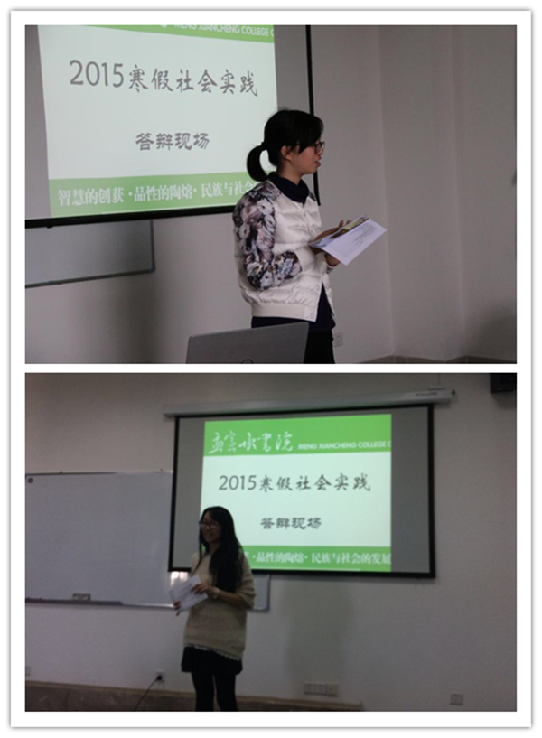 2015年3月18日至3月22日,由孟宪承书院团建中心、生涯发展中心和公益中心共同组织的寒假社会实践系列专场答辩活动圆满结束。本次寒假社会实践共有53支队伍参加实践,其中42支队伍顺利地进行到最终的答辩环节。