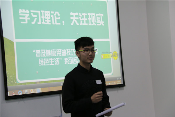 针对调查研究类的项目则更注重实践的科学性与结论的完整性。其中赵炜瑜同学结合自己专业特点给我们带来了“普及健康用油技巧,推动居民绿色生活”的调查。实践中创新的食用油使用手册引起了评委老师的极大兴趣,评委们纷纷评价道:“将所学知识服务大众,就达成了我们对于社会实践最初的期望。”