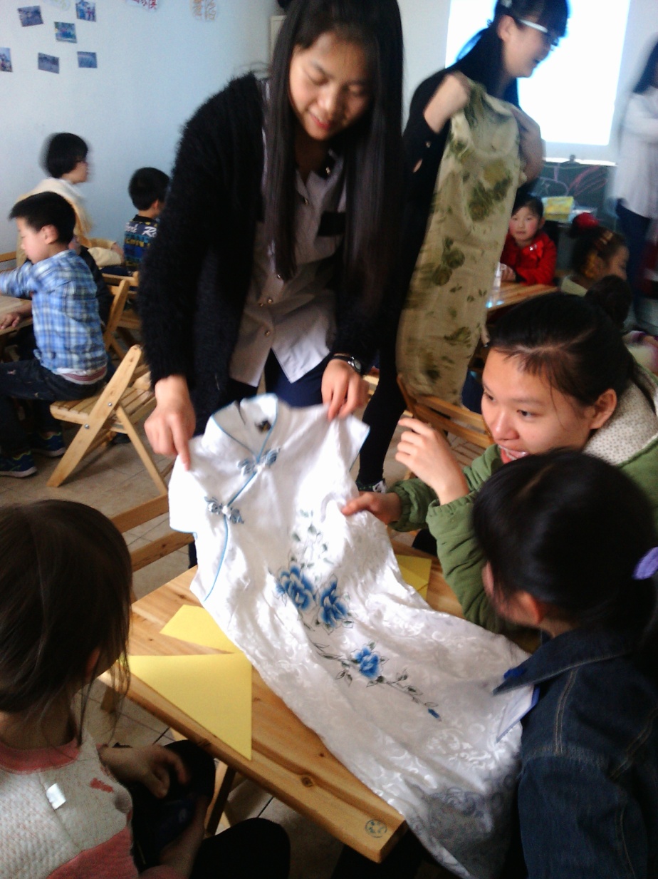本次活动第一个环节为旗袍展示,志愿者们将带来的三件旗袍给小朋友们近距离观赏,令小朋友们能够真正地感受到旗袍的魅力。