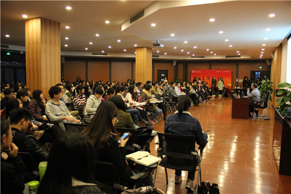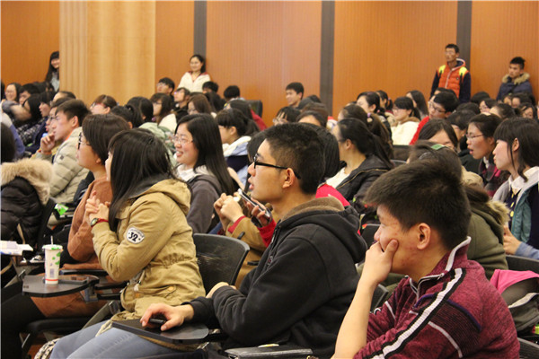 最令人期待的考前专题讲座于3月27日晚在共享空间202室正式举办,讲座邀请到华东师范大学传播学院副教授、普通话水平测试员张玲平老师作为主讲嘉宾。前来听讲的同学们络绎不绝,全场爆满。其中不乏即将进行普通话考试的13级同学们,也有不少14级的同学们,密切关注考试动态,以便自己进行长期的普通话训练。张老师的讲座生动形象,其本人的嗓音也十分具有魅力,从头至尾字正腔圆的播音腔引起了台下同学们的阵阵掌声,同学们饶有兴趣的纷纷效仿。