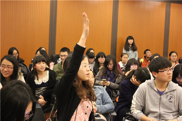 张老师为我们介绍了普通话测试的评级标准、流程和考试板块,并对四个模块进行了详尽的举例分析和讲解。讲解之后的互动环节中,同学们踊跃举手提问,张老师也一一解答,现场气氛十分活跃,同学们学习的兴趣持续高涨。