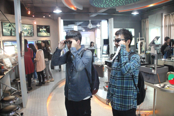 在解说员的感染下,大家纷纷主动观察,动手操作,发现了很多有趣的现象,有的同学极为惊讶和欣喜,专注于实验流连忘返。当然,山水之间有名宿,前来参观的同学也不乏个中高手,几位学霸的问题连珠炮似的轰得解说员们只能哑口无言。子曰:“知之为知之,不知为不知,是知也”,解说员们对于自己也不能解答的问题并没有妄下论断,而是与同学热烈地讨论起来。