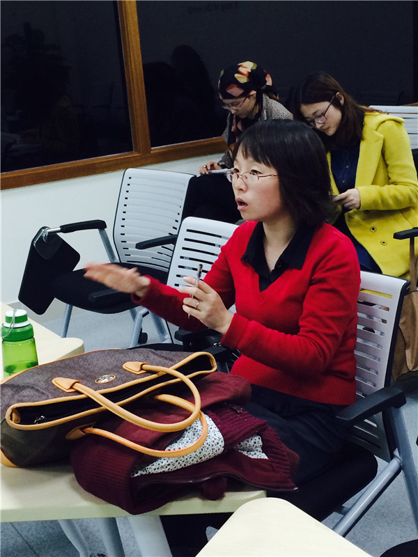 这次活动有4位同学进行了各10分钟的教学活动。在每一位同学讲课结束后,由田怀珍老师和时南老师分别给予了自己的建议,不仅仅是建议也有对于同学们的肯定和鼓励。老师们认真听过以后对教学的仪态、讲课时语言的规范性、还有讲课过程中所使用的教学策略、还有我们教学PPT制作的优缺点等都给了她们的珍贵点评和改进建议。