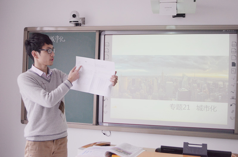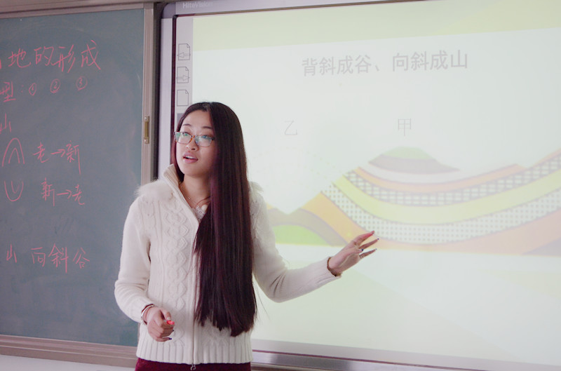 小组比赛中,站在讲台上的“地理老师”们讲课时慷慨激昂、风格各异,或风趣幽默、或沉稳大方,在白板上演示地理图片动画、在黑板上画板图写板书,充分地展现了各自的教学风采。台下的同学们也积极地配合“老师”的教学活动,回答问题、参与互动,保证了教学活动的顺利进行。