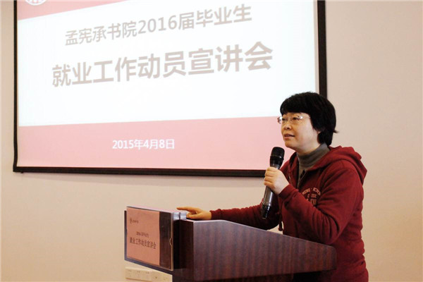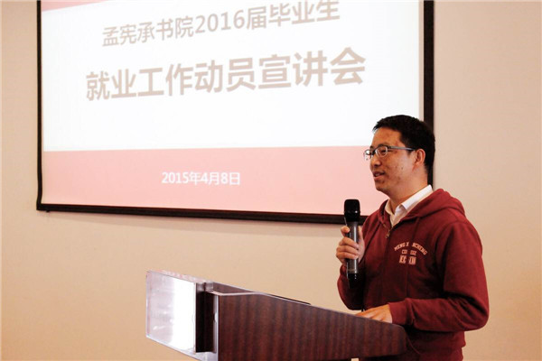 2015年4月8日14时,孟宪承书院“2016届毕业生就业工作动员宣讲会”在学生共享空间202成功举办。孟宪承书院党委书记吴薇、副院长苏振兴、就业推进办公室主任益建芳、副主任雷妍,及2012级各学科学生参与本次宣讲会。本次宣讲会由副院长苏振兴主持。