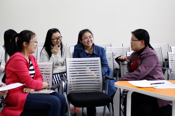 每一堂课上,同学们会临时抽取教学内容进行试讲,之后由人生导师点评并提出指导建议。这样的训练方式给同学们把理论知识应用于实践的机会,更有利于大家吸取人生导师们的宝贵意见,有针对性地改进自己的教学方法,为这学期即将到来的教师资格证面试做好充分的准备。