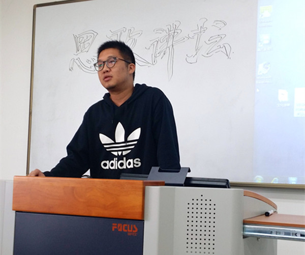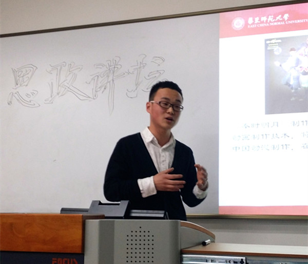 之后,13级的王文强学长又为我们带来了一场精彩的课堂授课。他以当今年轻人喜欢的动漫为线,从过去经典的《大闹天宫》,《葫芦娃》到今天大受欢迎的《秦时明月》,向我们阐述了文化创新活动的重要作用。课后,他告诉我们:“其实今天我来上这一节课并不是为了向大家证明我上得有多么得好,我只是想告诉大家其实政治课也可以不枯燥乏味,我们可以联系音乐、美术等有趣的东西把想讲的讲出来,就可以使政治课变得十分有趣。”