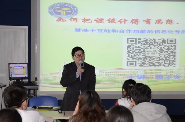 赖才炎老师就”如何把课设计得有思想,上的有品位”给我们详细展示了作为一个教育者的思考的重要性 。并现场展示了在教室里利用现代化的设备如何提高学生与老师的互动。实现屏幕共享。