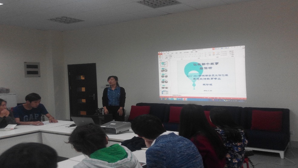 4月22日十一点半在学生共享空间220举办了2014—2015学年助理辅导员(以下简称“助导”)总结大会,杨艳红、陆敏、祝毅三位老师参加了汇报会并聆听了各位助导的工作汇报。同时参加汇报的还有21名14级的助导。