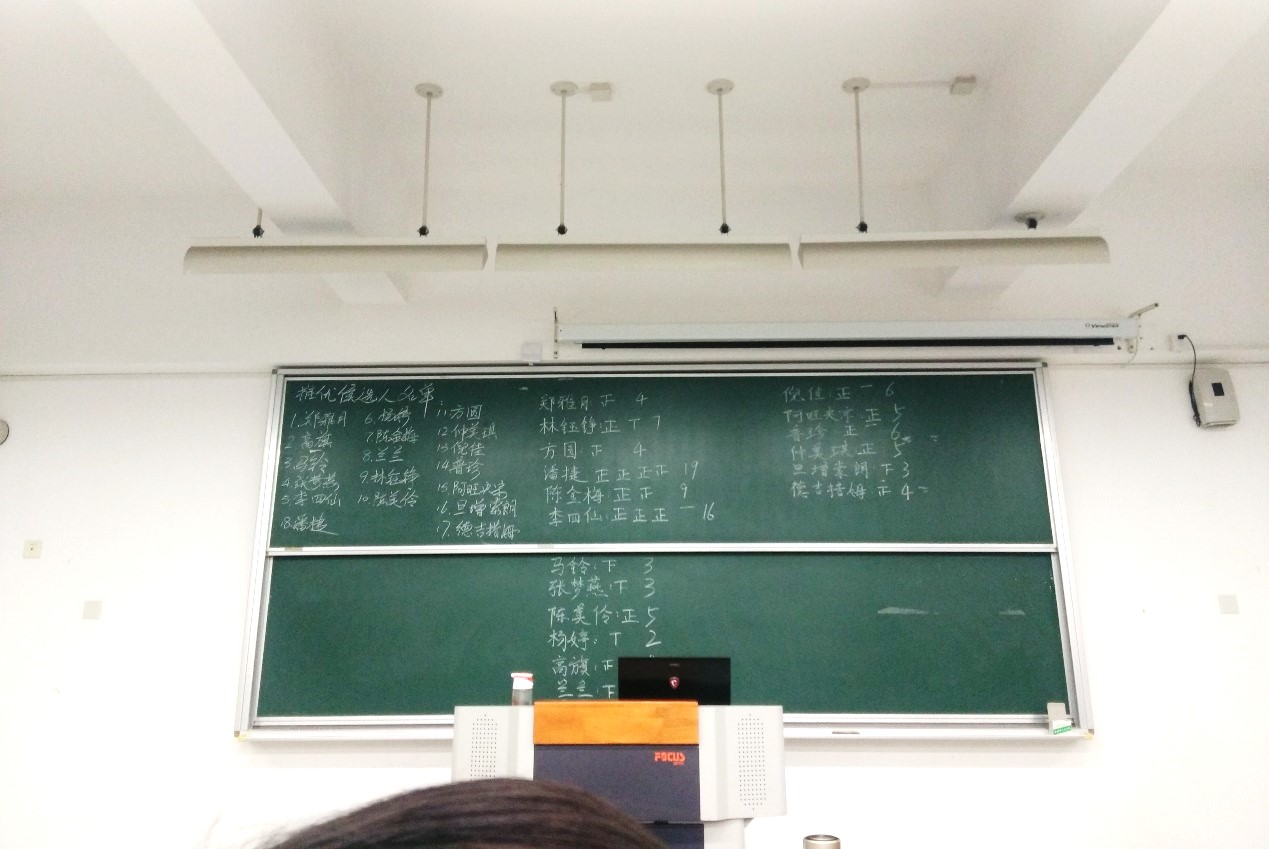 依照推优程序规定,有意向向党组织靠拢并符合推优候选人条件的同学按照递交入党申请书时间先后上台做1~3分钟的自我呈述。这些同学符合推优候选人的要求,综合素质优秀,从小受到马列主义先进思想的熏陶以及身边各级党员身先垂范的影响,政治思想进步,并具有极强的向党组织靠拢的意向。大家在自我陈述过程中充分体现了大家对国家的热爱、对党组织的向往,并讲述了各自为此做出的改变且获得进步。与此同时,团支书作为推优负责人将候选人的名字写在黑板上。