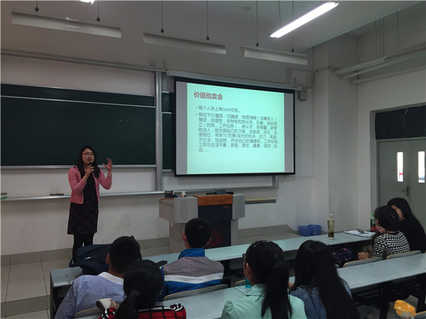 4月22日下午,2013级数学专业全体同学相聚一堂,在辅导员沙老师的指导下,进行了一场别开生面的“价值拍卖会”。