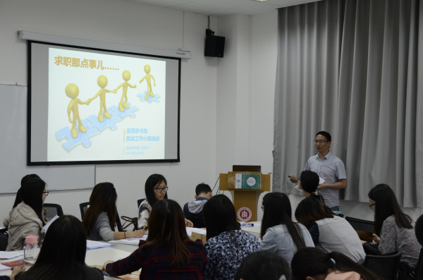 随后,苏振兴副院长为我们分享了“求职那点事儿”。苏老师以一个富有哲理的“寻找失落的一角”动画作为开场,让我们意识到了只有设定目标、用心、坚持,才能找到真正自己心中的“一角”。之后,他着重从“求职相关的经典理论”、“师范生求职日程表”、“如何确定求职目标”、“求职技能实例分析”这四个方面做了分享。苏老师还根据小组长的简历撰写情况,在现场剖析小组长的简历,并做了细致的简历写作指导,同学们也都纷纷点赞。