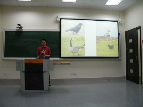紧接着,杨凯恩同学就自己寒假的“加拿大之行”为大家介绍了温哥华的鸟类、生态环境、人文风情等等。张老师也为大家分享了自己的美国游,一起探讨起了国内外在人文方面的差异。张老师说道:“在美国的许多博物馆不需要门票,普通民众都可以进去参观。”杨凯恩同学也表示感觉国外的一些类似场所比较亲民。