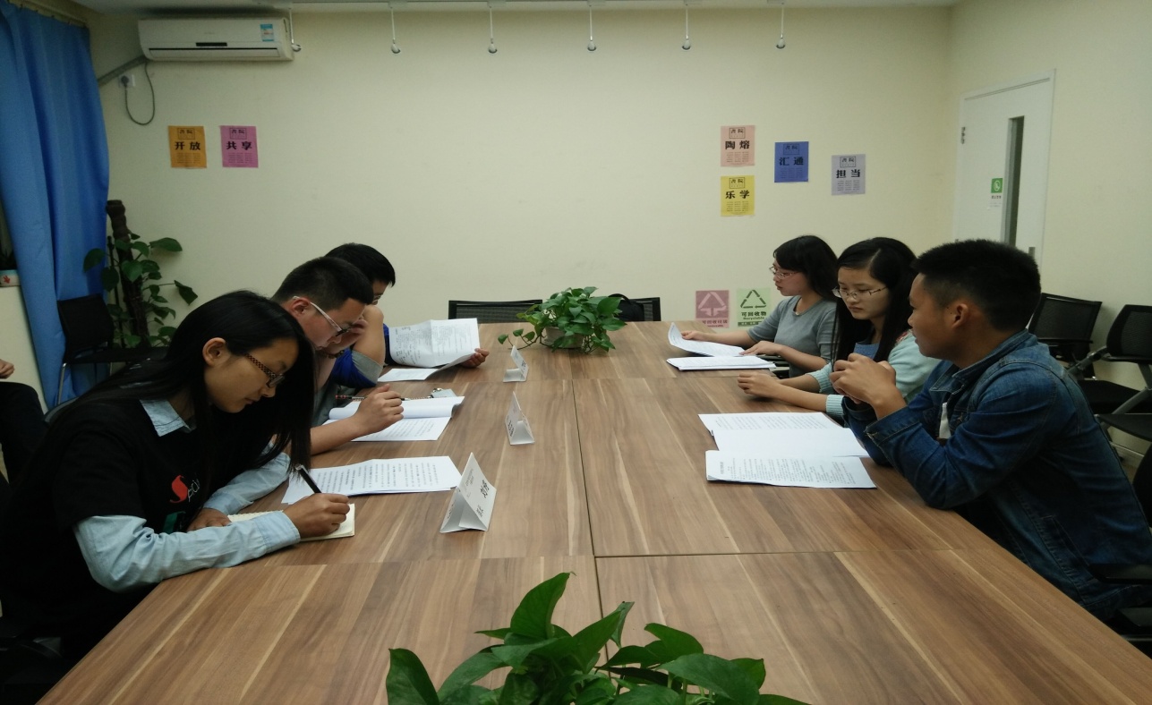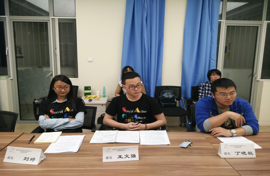 2015年5月6日晚上八点半,于20号楼107室,志趣联盟新成员“春晖社”答辩顺利完成,并进行了简单材料规范化培训。答辩由兴趣发展部长刘婷、志趣联盟部长王文强、社团管理部长丁晓敏共同评审通过。
