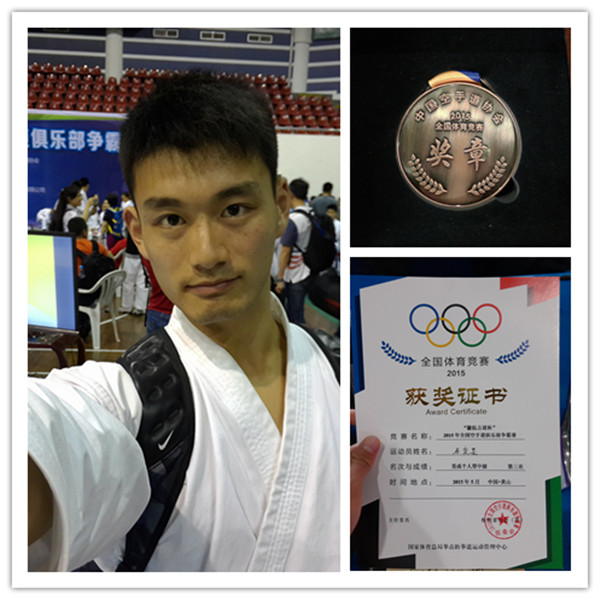 五一劳动节期间,华东师范大学孟宪承书院空手道社团骨干马奕旻同学赴安徽参加了2015年全国体育竞赛中的空手道竞赛项目,在孟宪承书院老师的支持和一直以来的努力练习及社员的帮助下,在比赛的激烈角逐中,马奕旻同学取得了全国男子个人型比赛“第三”佳绩,获得“季军”头衔。