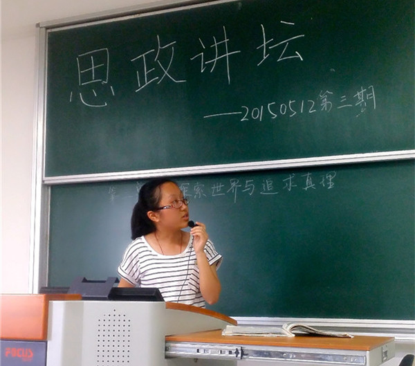2015年5月13日下午3点,14级思政专业的第三期思政讲坛在二教210如期举行,参加此次讲坛的是14级思政班第五、第六组同学和辅导员刘佳老师。