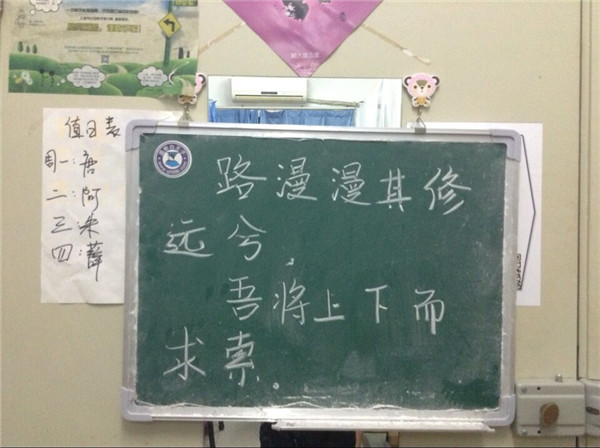 活动在卫生检查的基础上同时很注重各寝室三年来积累的文化氛围。在评比检查中注重寝室安全、卫生的同时,也着重对寝室文化建设的情况进行了评估。这种独特的寝室文化集中体现在小黑板上或励志或诙谐的寝室标语中。