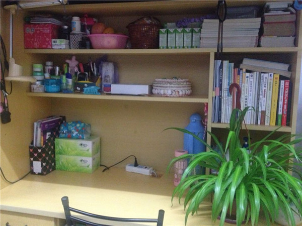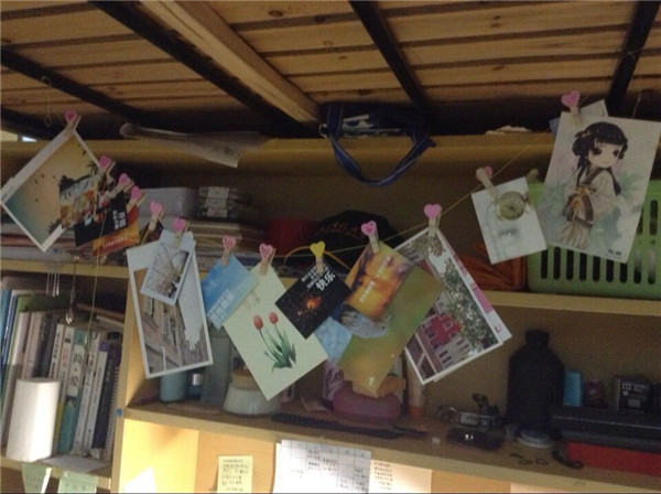 细看寝室很是温馨,桌上有贴着自己的画作,有文艺或个性的墙纸,有的寝室更是突显了我们生物系的特色,每个人养的小盆栽一起放在窗台就是一个小植物园了。单调的寝室格局因为这些装饰而显得温馨独特,洋溢着寝室友好欢乐的氛围。