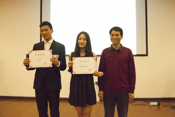 小朋友们场外为学导拉票助威 12名参赛学导分为四组,第一轮为三分钟个人演讲,每组派出两名学导出战;第二轮为现场抽签的两分钟即兴演讲,每组派出剩下的两名学导进行比赛;第三轮进行现场观众人气投票,每位观众可以为三位最喜欢的学导投上宝贵一票,工作人员在后台进行现场唱票;最后是团体赛,每组进行问题轮答和选答,根据答题对错进行相应的现场计分。最终总成绩按各轮成绩所占百分比进行相关计算。整场比赛赛制公平,评分公正,进行有序。 刘德恩老师对比赛进行总结陈词 刘德恩老师代表三位评委老师进行总结,表达了对学导们的真心付出的认可,以及对此次大赛的肯定。 刘德恩老师为团体第一名C组美少女战士队颁奖 夏冰老师为荣获个人三等奖的学导颁奖 夏冰老师为王文强学导颁奖 杨艳红老师为团体三等奖B组噼里啪啦队颁奖 刘德恩老师为单项奖最佳人气奖得主陈佳展学导和最受媒体关注奖得主王文雅学导颁奖 经过两个小时的角逐,奖项花落各家。学导们讲述了自己的心路历程,一个个片段在我们脑海中闪过,一切也都恍如隔日,不曾远去。曾经留下的汗与泪,到了今天也都酿出浓厚醇香的美好回忆。 学导、评委老师和到场嘉宾合影留念 工作人员合影
