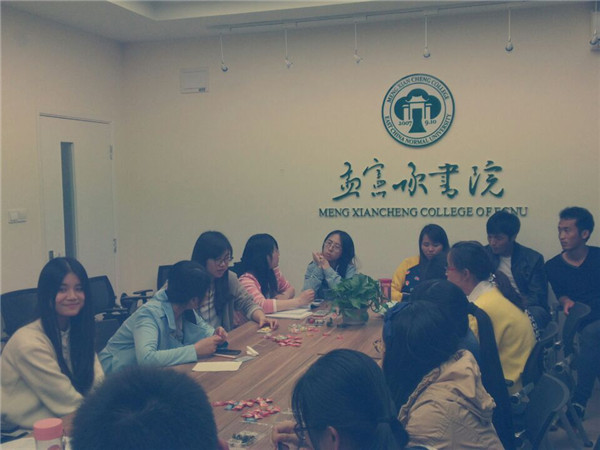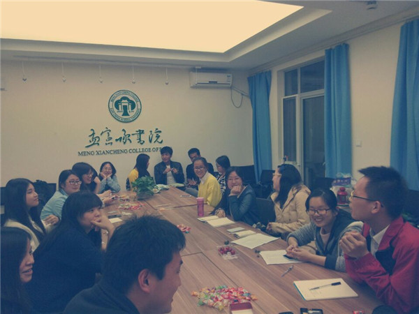 接着,大家还交流了下感兴趣的话题,如教师资格证问题等。最后,由陈起标与杜中海两位活动策划人主持接下来的游戏环节。刚刚互相认识的大家分成四个小组,一起参与主持人精心准备的“一站到底”游戏,在整游戏欢快气氛的带动下,大家踊跃回答,不时传出笑声。