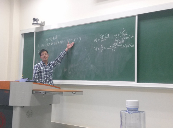 本周五,福建组的同学们展示他们的讲课风采,占老师作为指导老师。第一位讲课的是陈凯玲同学,她讲课的主题是化学平衡,讲课途中用到了图表,形象生动的给学生展示了有反应物浓度变化到化学平衡形成的过程。不过,占老师提到,有一个很浅显的例子可以解释化学平衡,那就是水池的放水与注水,同等条件下,水池的放水速度与注水速度一致,那么水池中的水量自然不再变化。同学们恍然大悟,原来用生活中的经验能使学生更加透彻的理解化学概念,从而更快地掌握所学内容。 最后,鉴于本周末即将迎来教师资格证面试考试,占老师预祝同学们能够在面试中取得好成绩,同学们也互相打气,预祝彼此成功。