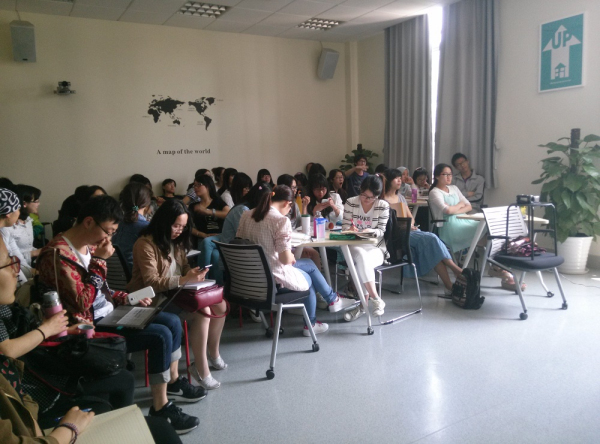 本周二,依然是广西组的同学讲课,由于沈老师临时有事未能赶来,同学们便采取了相互评价的方式。没有一位同学讲完课,同学们就叽叽喳喳的讨论起来,非常积极的提出自己的见解,讲课的同学也非常积极的听取同学们的建议,大家争取共同进步。