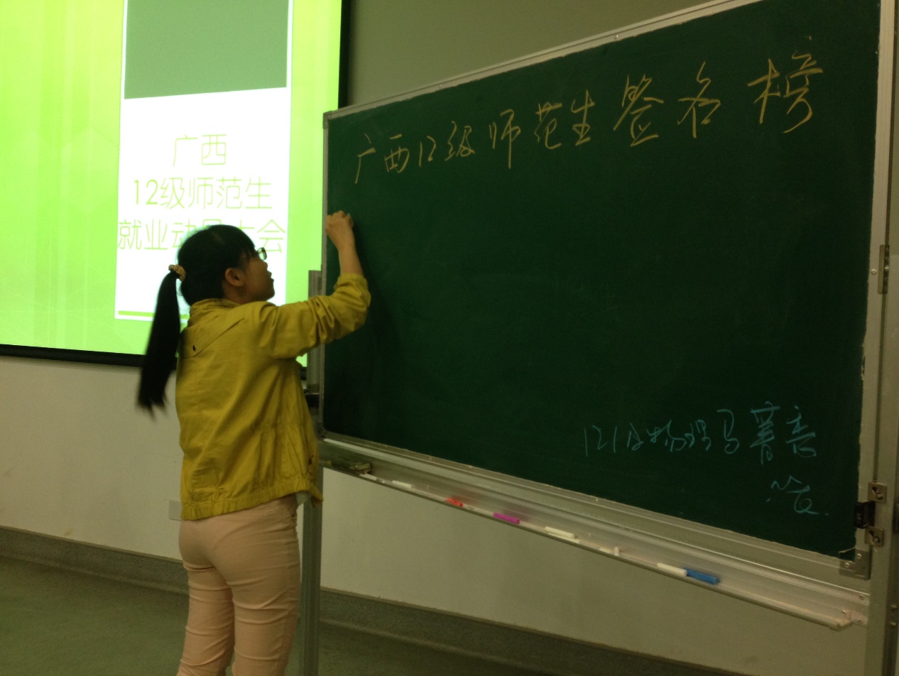2015年5月14日,华东师范大学广西12级免师就业推进交流会如期开展。广西免费师范生们自入学以来,进行过多次见面交流会,一些同学都已经熟络了。而本次就业推进交流会,也是作为2016届免师即将走上实习就业道路的准备工作,因此邀请了11级学长学姐进行实习和求职经验的分享。此次分享主要是分小组的形式进行,七八个文理科的同学积极向学姐学长求教,相互融洽地进行着交流。会后,到场的同学在签名榜上留下自己的名字纪念着本次见面会。