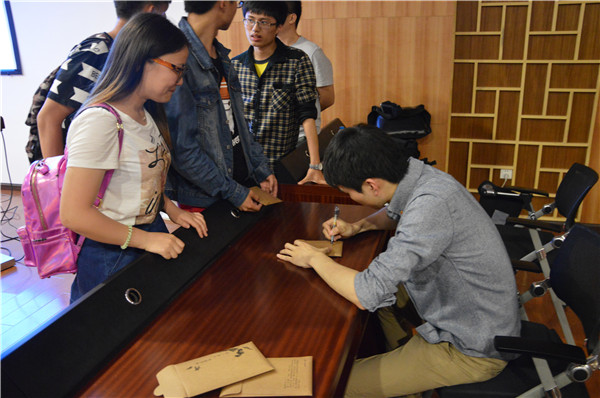 分享会结束后,同学们争相与隆姐合影留念,隆姐也为提问题的同学赠送签名的一套“植此四年,今昔一念”明信片,并在明信片外壳上写上隆姐寄语,值得珍藏纪念,让粉丝们不虚此行。