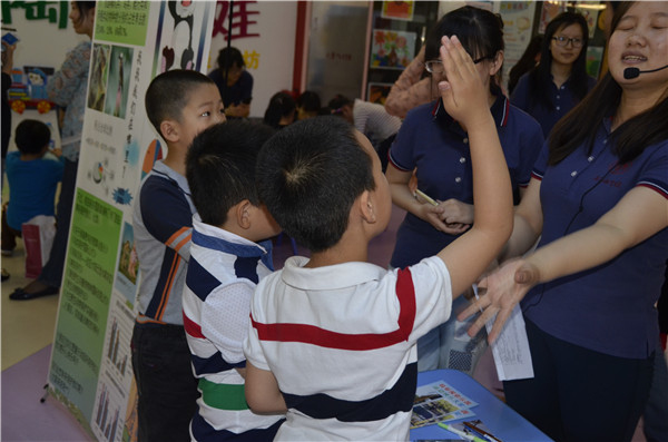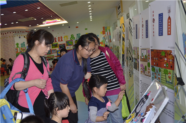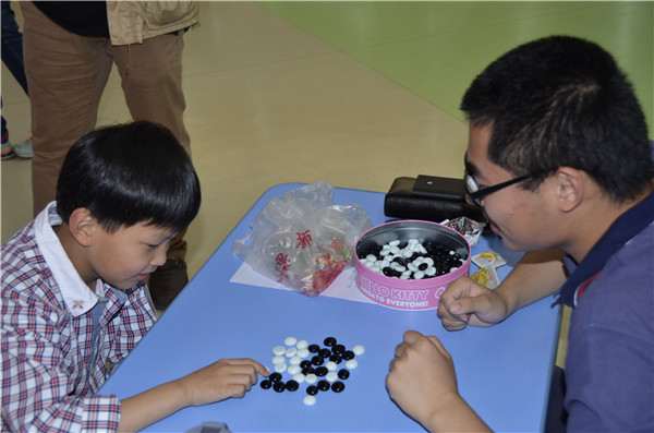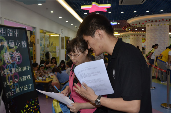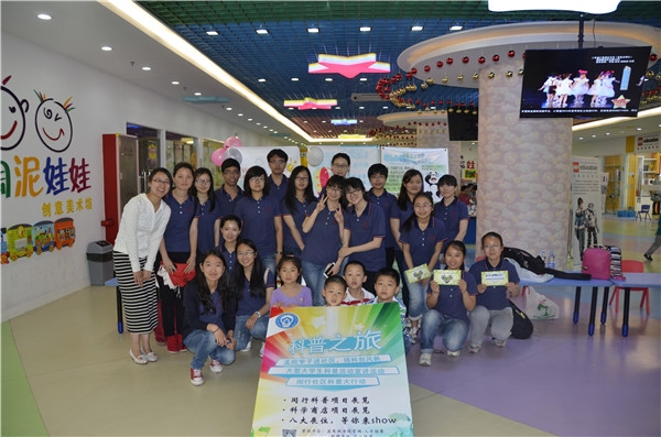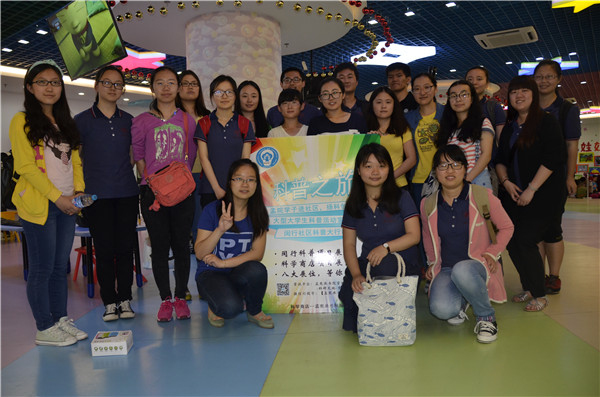 “雷锋精神”组和小朋友们玩“你画我猜”和“蒙眼找星星”等游戏,引导他们互相帮助,学习雷锋精神。 “生活中不可缺的数学”组以24点、高了低了和最后的棋子游戏吸引了许多小朋友,提高他们基础的运算能力和逻辑分析能力。 “生活中不可缺的数学”组教小朋友玩最后的棋子游戏 “粒粒皆辛苦”组以画面具吸引了大批小朋友发挥创意,小朋友自己画的面具作为奖品归小朋友所有,大家玩得不亦乐乎。 “粒粒皆辛苦”组小朋友们专注画面具 “鸟儿——人类的朋友”组以鸟儿模型和愤怒的小鸟橡皮泥吸引小朋友,介绍濒危鸟类知识,选送精美小礼品。 “鸟儿——人类的朋友”组可爱的橡皮泥 “关爱行动”组采用拼图游戏宣传引导青少年性别认知,分发气球作为小礼品。 “关爱行动”组帮助小朋友拼图 7支项目分上午、下午两场进行,各种主题的科普活动都吸引了大批儿童和家长的参与,在精彩的游戏和欢乐的氛围中,小朋友们学习到了科普知识,而家长们也与孩子一起参与,促进了亲子互动体验。 “鸟儿——人类的朋友”组展板上小朋友们的留言 小朋友与“雷锋精神”组的雷锋侠合影 小朋友们热情参与,家长们也积极学习 一天的科普宣传活动在热情的围观中展开,在积极的参与中度过,在意犹未尽中结束。此次科普宣传有重大的意义,对于小朋友和家长来说,是一次难得的学习科普知识和互动游戏的机会;对于各个项目组来说,这是一次难得的与小朋友和家长直接接触互动的机会,既能够在活动中体现自己项目的研究价值,也在活动中收获经验和建议,为以后的努力找到方向。 上午场活动结束,项目组合影留念 下午场活动结束,项目组合影留念