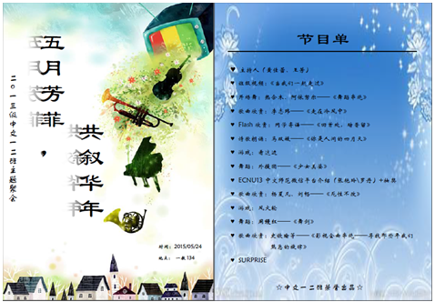 2015年5月24日晚上7点,晚春的风混着木香花和杜鹃的淡香,一教134,温馨的开场曲拉开了13级中文专业五月团日活动。