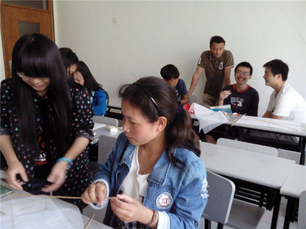 5月27号下午,2014级物理专业2班举行团日活动,大家自己动手做风筝,再将自己亲手制作的风筝放上天空。