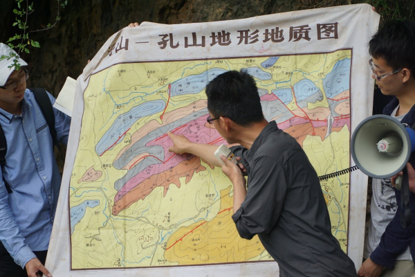 孔山北坡考察的最后一个点是一个背斜的倾覆端。同学们看着这个出路良好、结构清晰,宛如教科书一般标准的背斜之后,不由地发出感叹:大自然才是最好的教科书!百闻不如一见,祖国壮丽的山河就如同巨大的展开的书页,等待着我们的学习、探索与发现。