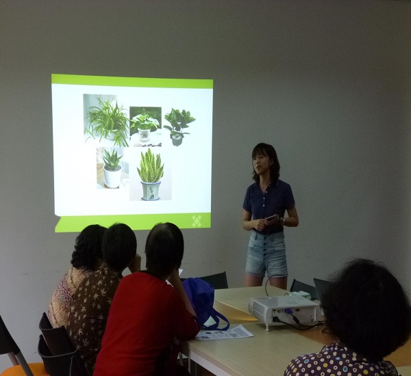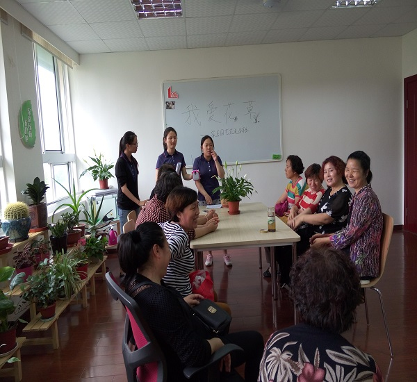 “我爱花草”组早早来到场地准备,社区活动室有很多花草都是居民当志愿者种植的。组员们认真辨认各种花草:一帆风顺,天竺葵,滴水观音等各种各样的花草。在活动的开始后,项目组成员先回答了上次社区活动中遗留下来的问题,阿姨们也都认真听着学习,时不时分享自己的看法。接下来,成员介绍了花草种植中的一些误区和应对办法。最后阿姨们进行经验分享,有的阿姨是社区绿化班中的优秀成员,活动室的植物很多都是她们培育的,她们家中也种有很多植物。经验丰富的阿姨们也都积极地讲述分享自己的花草种植经验。