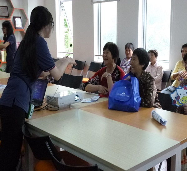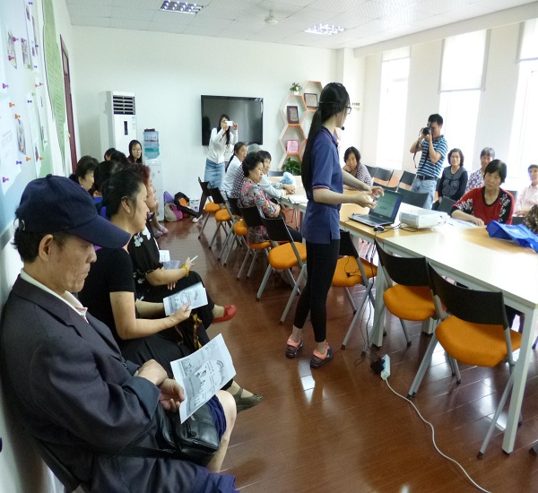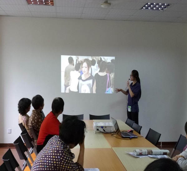 亲子关系组首先开始她们的亲子关系课程。她们主要采用通过观看最近大热的家庭剧《虎妈猫爸》的节选片段讨论存在的亲子关系问题,从而解决居民自身的亲子关系的疑惑,加强认识,从而把家庭建设得更加和谐美好。组员们挑选了例如城市和农村教育,学区房,真假日记等热点话题,先同居民们观看电视剧片段,再由此引入到对于问题的讨论,最后再由组员总结对于类似亲子关系和家庭教育的建议和看法。居民们认真地观看视频,不时地与周围人讨论,在交流环节中也热情参与,分享了自己对于这些问题的看法以及自己的实际情况,气氛热烈又不失亲切和谐。最后,居民们都表示此次的亲子关系课程自己收获颇丰。
