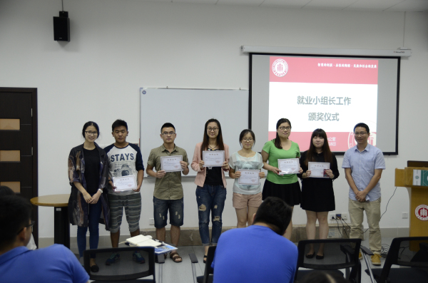 环节二:为肯定各省就业小组长在工作的付出,进一步激发各小组长的工作热情,举办了就业小组长颁奖仪式,苏振兴老师和雷妍老师为小组长颁发荣誉证书和奖品,并合影留念。