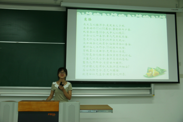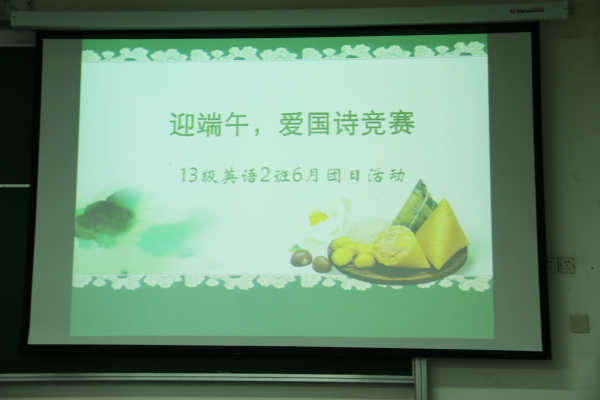 端午佳节,粽子飘香,为了纪念爱国诗人屈原,激发同学们的爱国激情,弘扬中国传统文化,13级英语专业2班开展了“迎端午,爱国诗竞赛”的活动。