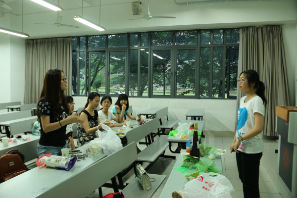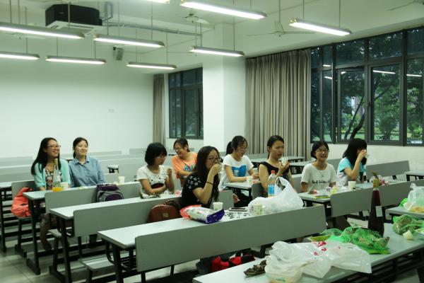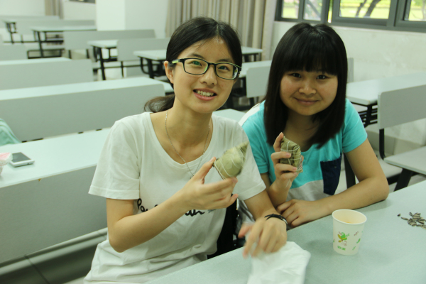 封面 温馨的端午餐 本次活动主要分为三个环节:端午知识竞答、爱国诗歌背诵、小组游戏。 欢乐气氛 了解完端午节是什么、该做什么后,接下来就是赏析背诵伟大爱国诗人屈原的名作《离骚》了。对于《离骚》,大部分的同学都不是很陌生,因为在中学阶段曾学习过《离骚》的选段。所以在之后的时间,你可以看到这样一幅场景:英语专业的同学摇头晃脑地念着中文诗:“长太息以掩涕兮,哀民生之多艰……”。 图为:游戏“你说我猜” 为了使本次活动增添一些趣味性,结束完诗歌赏析后,我们开展了以端午为主题的小组游戏:你说我猜,粽子版本的歌曲接龙,各地家乡方言朗诵爱国诗等。每一个人手里拿着粽子,脸上笑得像花儿一样。 温馨合影 在一片欢声笑语中,我们的迎端午主题的团日活动也接近了尾声。通过本次活动,同学们了解到了更多的端午节知识,从而进一步得加深我们外语学习者对于本国传统文化的认识,激发了同学们的爱国激情,并且促进了同学们之间的交流,舒缓了学业压力,增加了班级凝聚力。