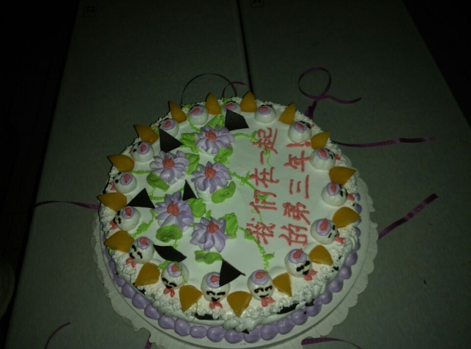 在游戏结束后,播放了一段精致的总结三年以来的照片视频。视频中记录了同学们3年来点点滴滴的寝室生活,和一些比较随意生活画面,让每个心中都洋溢着暖暖的温情和感动,给了同学一个感动的惊喜。最后,我们推出了2班的3岁生日蛋糕。所有人一起合唱了《生日快乐》,以此纪念三年前我们大家的第一次相聚。同学们对着蛋糕许愿,边吃着蛋糕边谈笑风生。当然,在游戏环节输了的同学就需要接受惩罚——吃撒了盐的蛋糕。