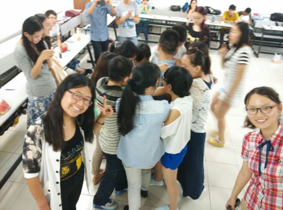 下午三点,活动正式开始。尽管昨天下午下了大雨,但还是没有浇灭同学的热情。一开始,班委为大家带来了一段热舞——《小苹果》,在炎炎夏日里为2班同学带来了一阵“清凉”。尽管2班班委的舞技仍需提高,但这段简单的舞蹈却饱含着班委们浓浓的诚意。之后,我们将班级同学分组,组织了一系列的游戏。