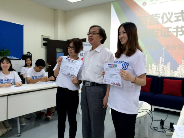 汇报结束,随之而来的便是本次项目上海部分的结营仪式。王建磐院长为项目双方书院的每一位成员颁发了项目结营证书。