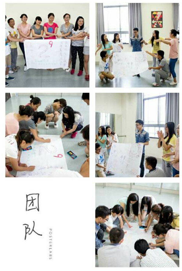 同学们随机分成两组,在有限的时间里确定属于自己队伍的名称、口号、队歌和队伍的“图腾”。成功组建了两只队伍“非常六加三”、“二的九次方”,他们在接下来的活动中面对面PK,互不相让。“非常六加三”宣言:非常六加三,梦想起航!海报图案象征我们手牵手,心连心,在成为优秀教师的道路上并肩前行。“二的九次方”也不示弱,他们说“我们的组员是分组时都喊了二的人,9代表我们队伍有9个人,也有长久、持久的意思。也许我们每一个人都很二,但是我们手牵手,像乘法一样,我们的力量将会比二的九次方还要大!”