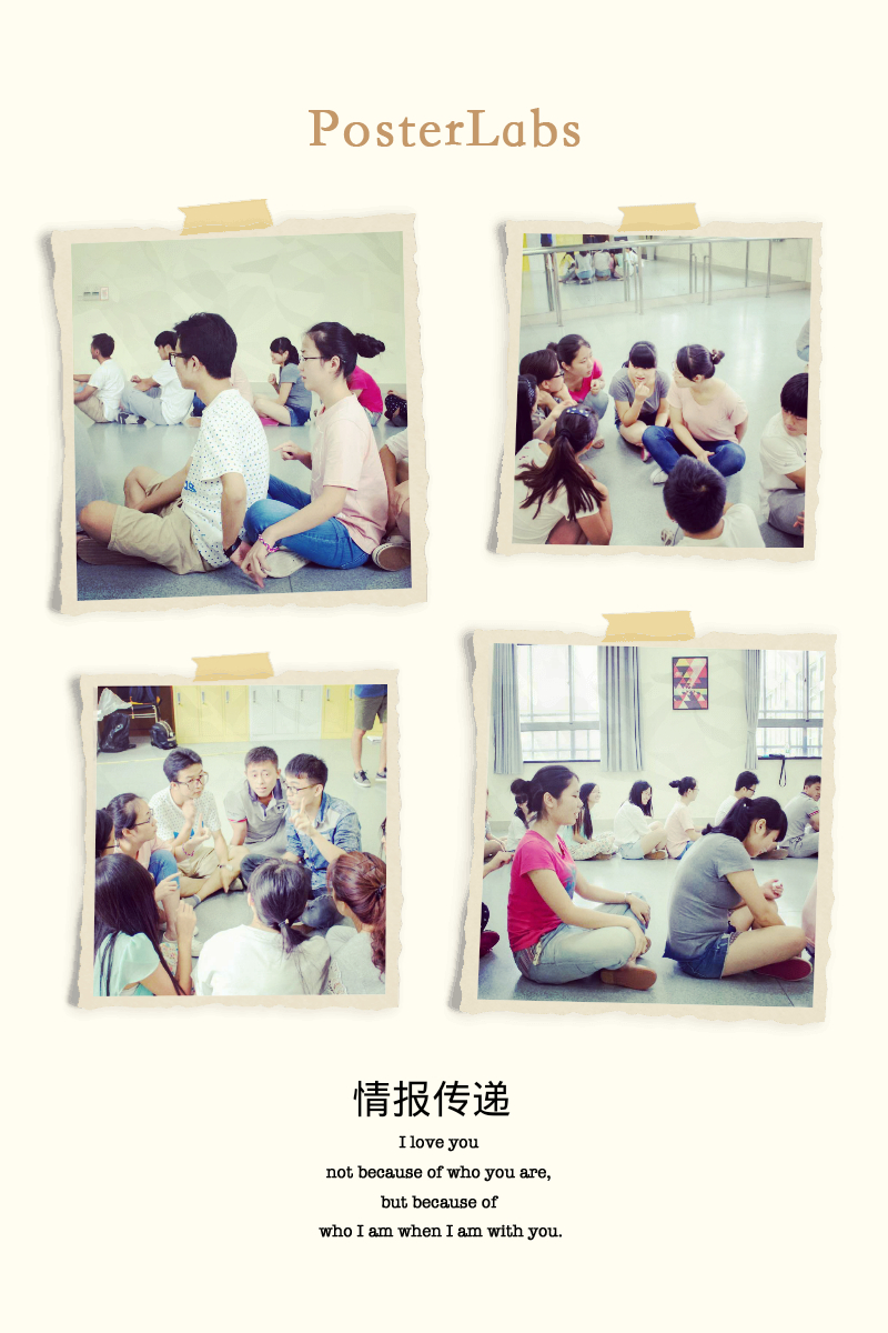小组成员坐成一排,只有最后一个同学知道需要传递的信息,整个过程不能说话,难度不断提升,从 开始能够用手写字,到最后既不能动手也不能扭头更不可以借助任何工具,小组成员每次游戏间歇都进行紧张的讨论,不断改变方案。最后战况是是一比一战平,徐老师启发大家仔细回想游戏的过程,都说说自己的感受,同学们有不少新的发现和感悟。“非常六加三”:在每一轮游戏前,都制定了一个简明的方案,大家讨论很有成效,交流没有遇到意象的障碍,往往一句话刚说出来大家就都明白意思了,有效的沟通是成功的条件。稍有遗憾的是没有设置合适的休止信号,造成了一些不必要的混乱。 “二的九次方”:认为小组每一次离胜利都很近,阳琴同学坐在排尾,她感叹每当从后排看到有同学信息传递错误心里都很着急,巴不得上前去告诉他,后来小组反思,如果在游戏进行过程中能够有一个及时的纠错机制,就可以提高不少效率;坐排头的同学说自己每一次都经历着漫长的等待,每次都在祈祷能快一点传到自己,每次下定决心提交答案的时候都是忐忑不安的。坐在当中的同学压力也不小,他们坦言很多时候都有一种迷茫的感觉,好在队员们心有灵犀,很多信息居然能在重重障碍下成功传递,可谓一大奇迹。