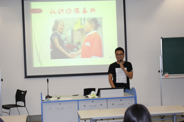 已经在贵州省仁怀一中工作三年的08级心理专业丁雷学长为大家带来精心准备的暖场游戏。游戏的名字叫做“认识你很高兴”,在学长的主持下大家分别去找自己以前不认识的人,相互交流并寻找彼此间有“含金量”的共同点,会场气氛迅速活跃起来。