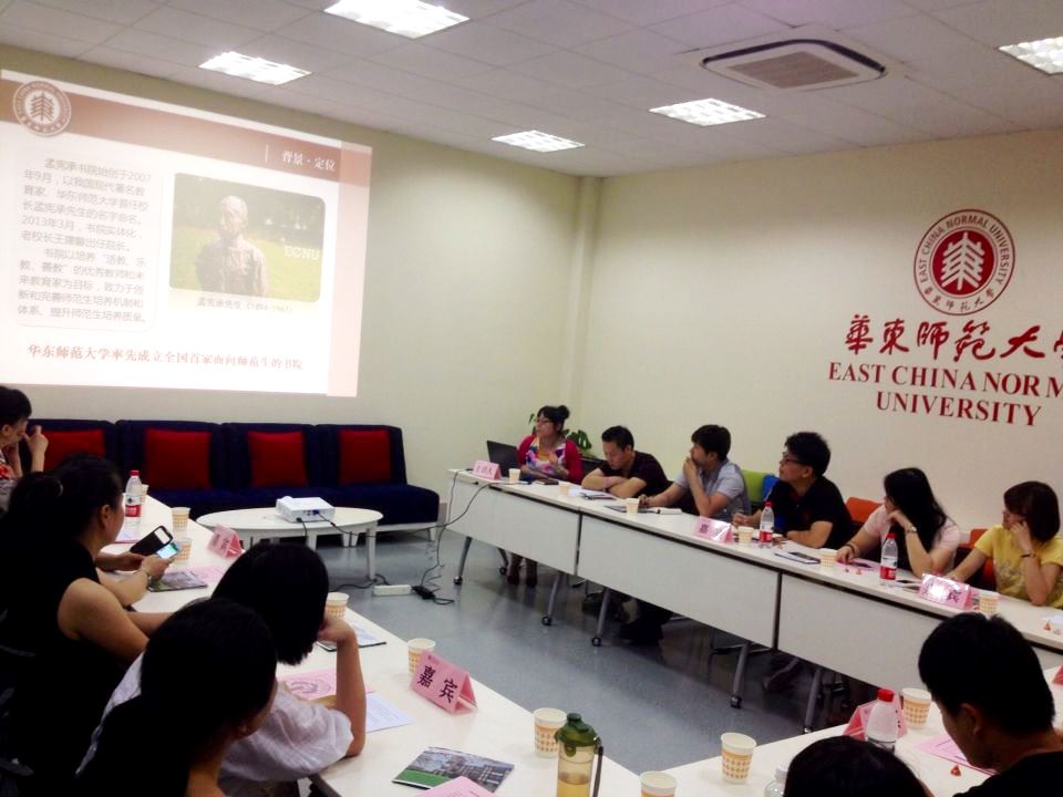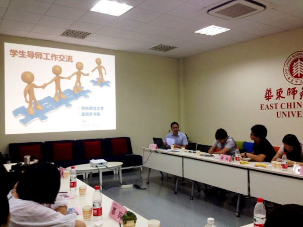 2015年7月30日,上海市西郊学校学生事务中心主任陈薇老师,团委书记顾寅老师率团到访孟宪承书院交流导师工作制度。孟宪承书院副院长苏振兴、院长助理杨艳红、学业办公室主任李桦、学生事务办公室主任兼团委书记梁宏亮等一同参加了接待交流活动。
