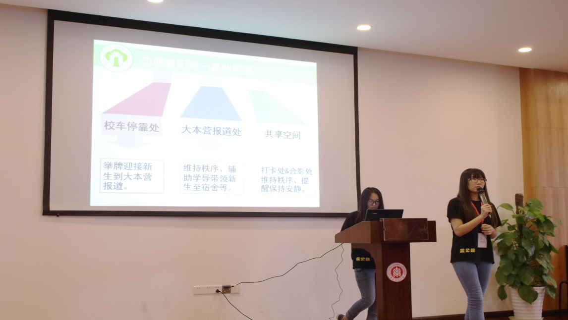 本次大会由公益中心副主管魏然主持并主讲,她为志愿者们讲解了迎新当天新生报到的流程、志愿者职责以及需要注意的事项,并提出“新的家,心的家”这一口号,希望志愿者们能够代表书院全体来给新生营造一种家的氛围,让他们感受新家的温馨与温暖。