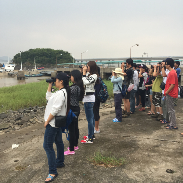 鸟类野外生态学观察也为同学们在此次动物学实习中留下了浓墨重彩的一笔。为了赶在鸟类活动的最高峰时期进行高效率的观察,同学们在清晨5点起床,在唐思贤、薄顺奇、何鑫老师的带领下来到常绿阔叶林、竹林、农田、海滩等不同生境对鸟类进行观察。在望远镜的帮助下,大家看到了一个不同寻常的远方世界,看到了一个丰富多彩的鸟类王国。第一次看到美丽鲜艳的翠鸟在河边吃鱼的情态,第一次看到猛禽在空中滑翔的英姿,同学们无不为这常见却又从未遇见的场景深深吸引。